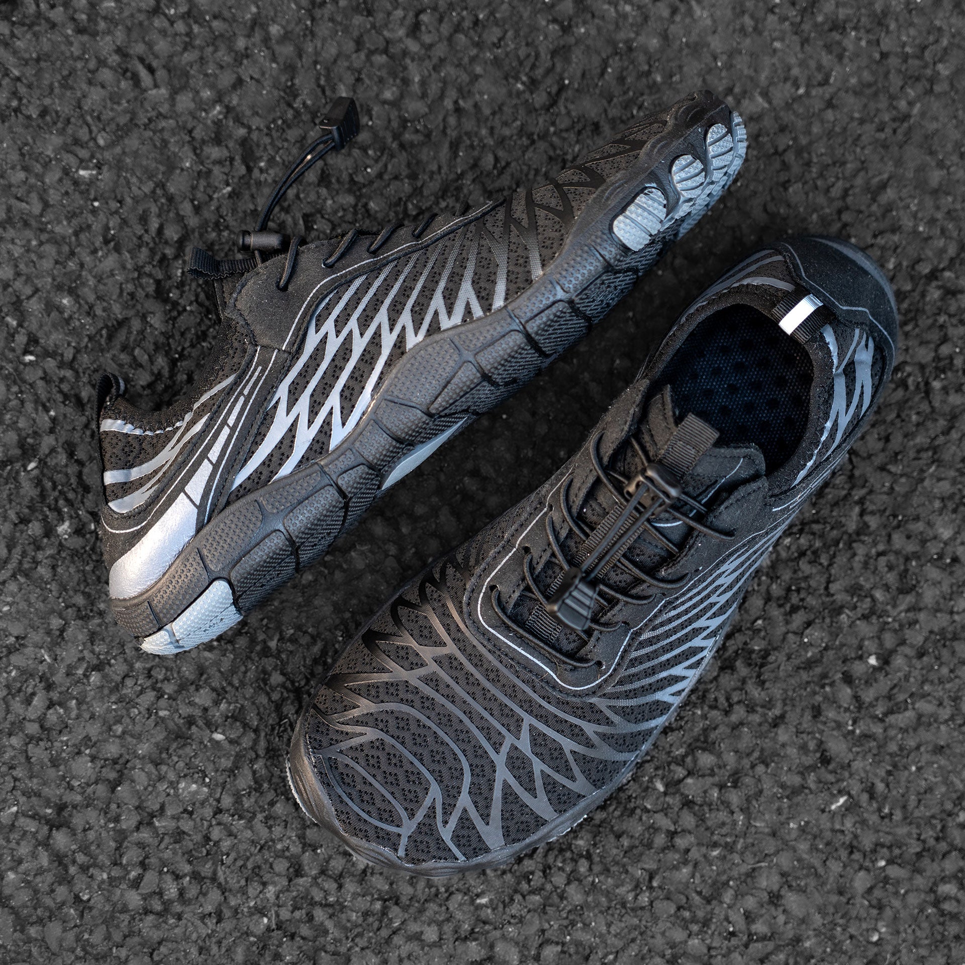 Contrairement au fait d'être complètement pieds nus, nos chaussures offrent une transition bien pensée qui aide vos pieds à s'adapter progressivement à des schémas de mouvement naturels. Elles sont spécialement conçues pour offrir les avantages de la marche pieds nus avec la praticité et la protection des chaussures modernes.